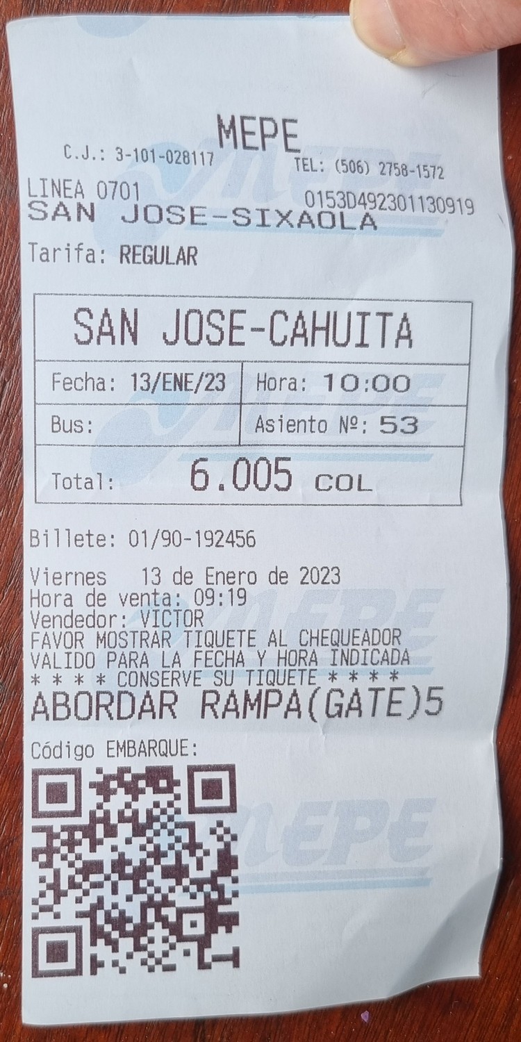 Distributeur de cash, carte sim chez Claro, et renseignements pris pour le bus vers Cahuita.