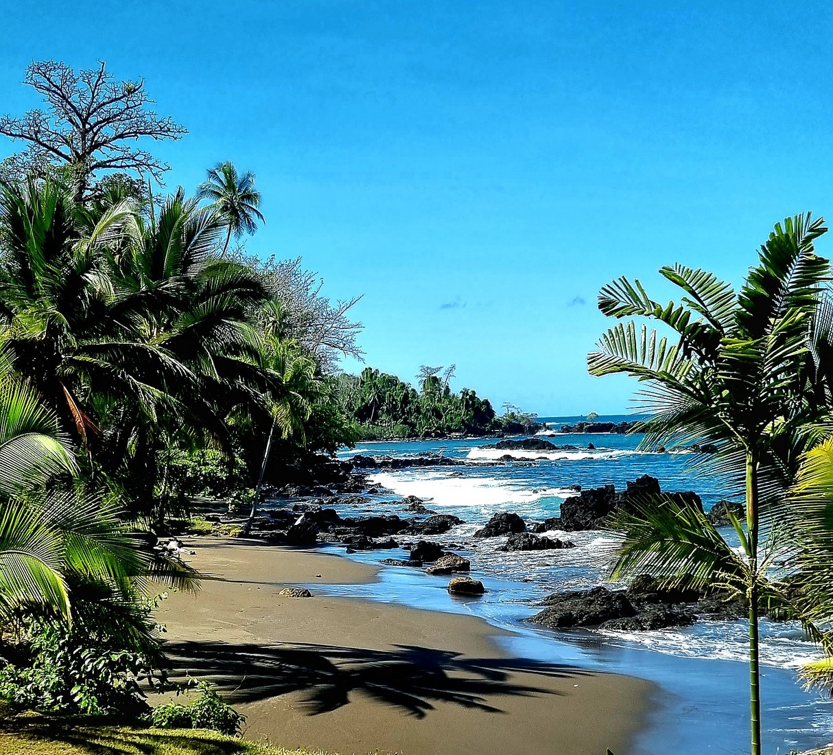 Nous nous enfonçons dans la jungle épaisse en bordure de l'océan puis à l'intérieur de la forêt.