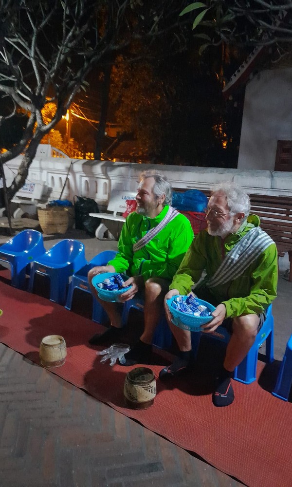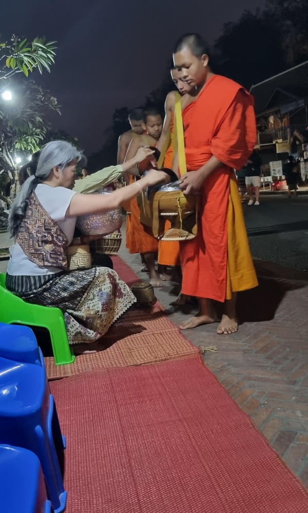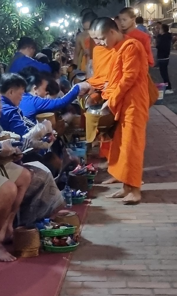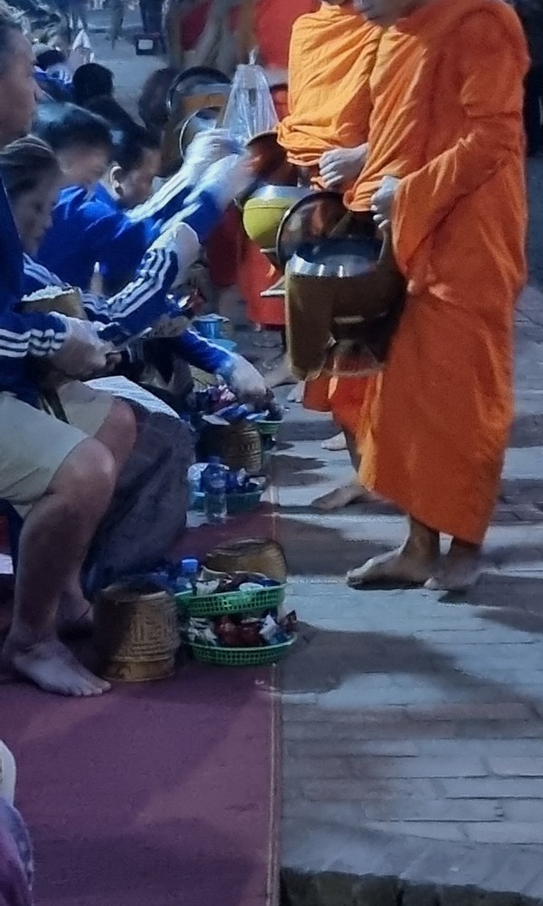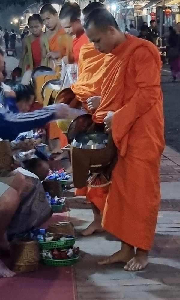 Aujourd'hui, lever 5 heures, pour assister aux offrandes offertes aux bonzes (le Tak Bat).