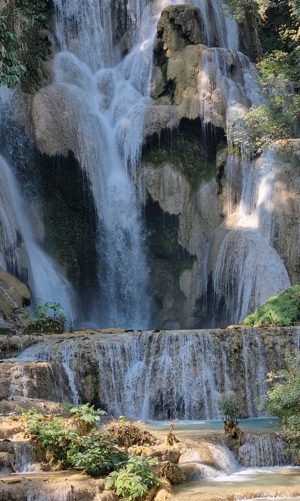 Celles-ci sont spectaculaires. Étagées dans un écrin de verdure, elles descendent à travers une forêt dense tropicale et les couleurs