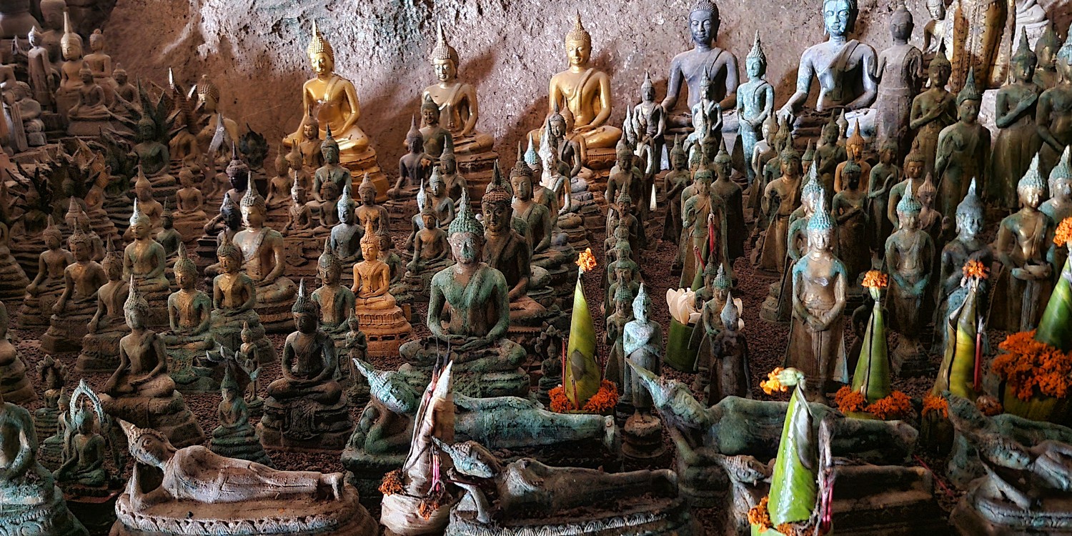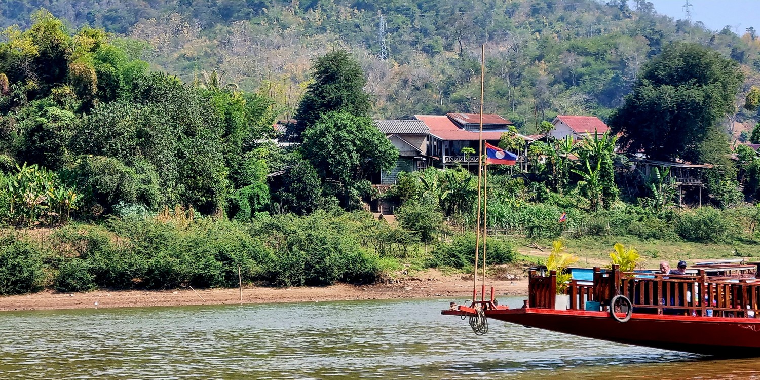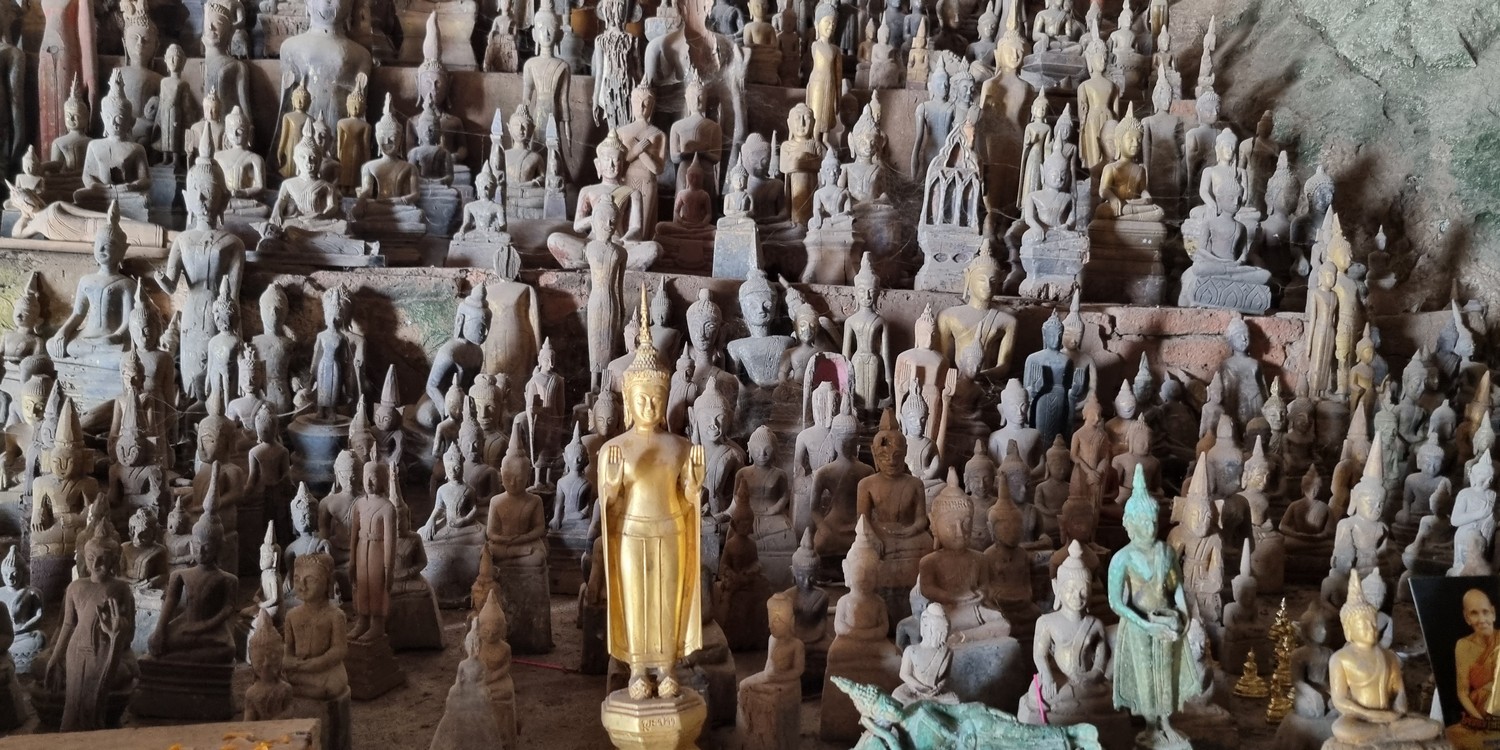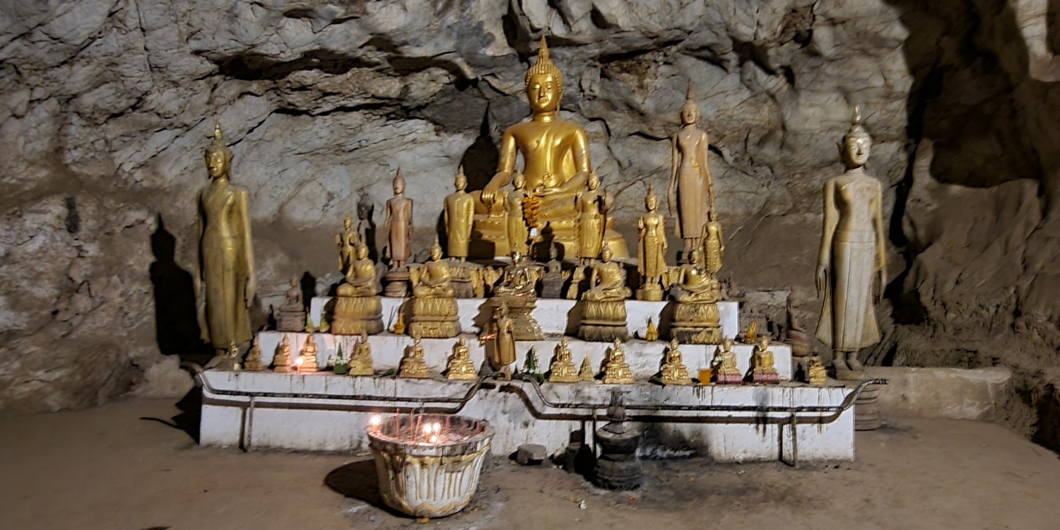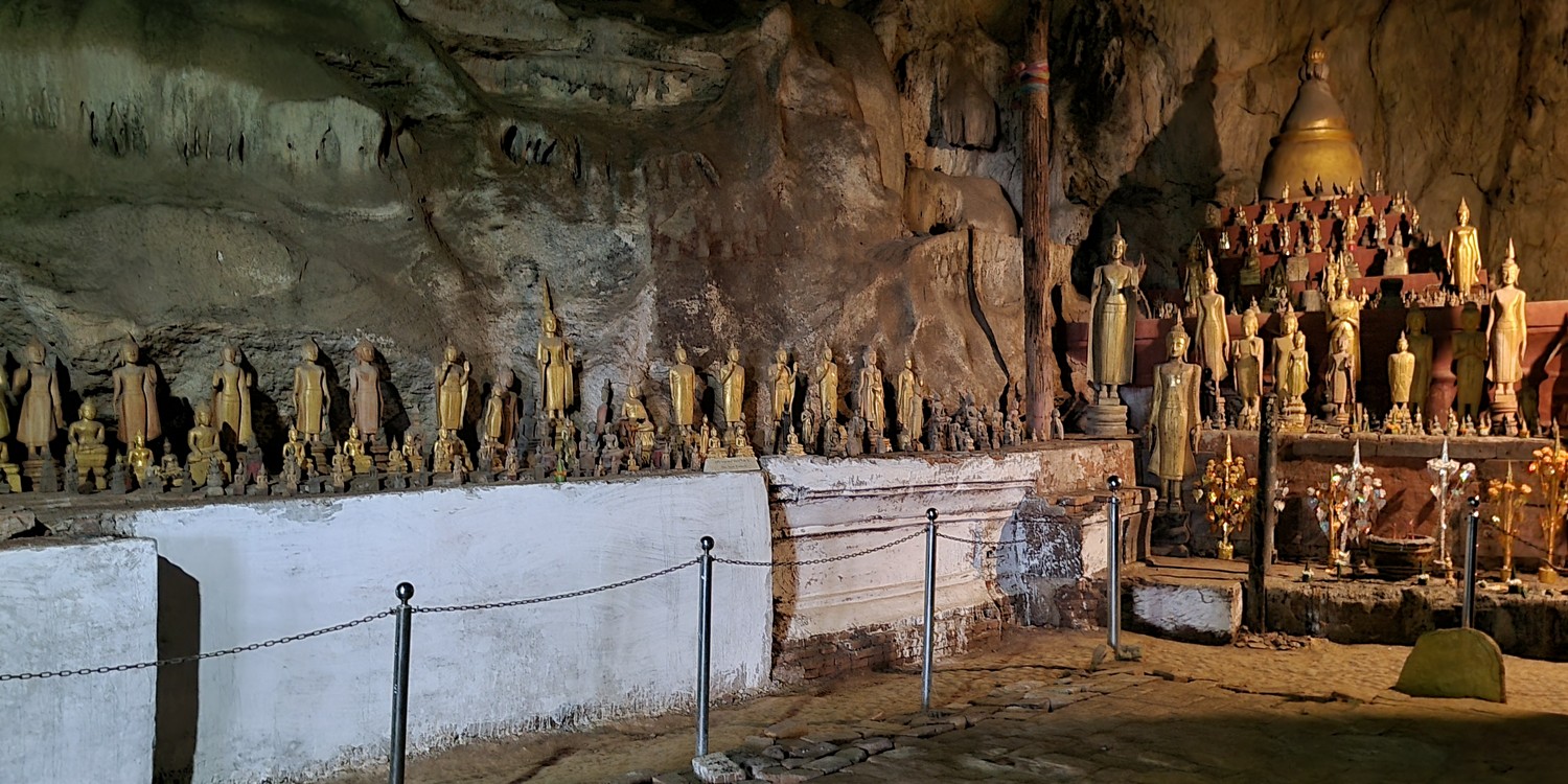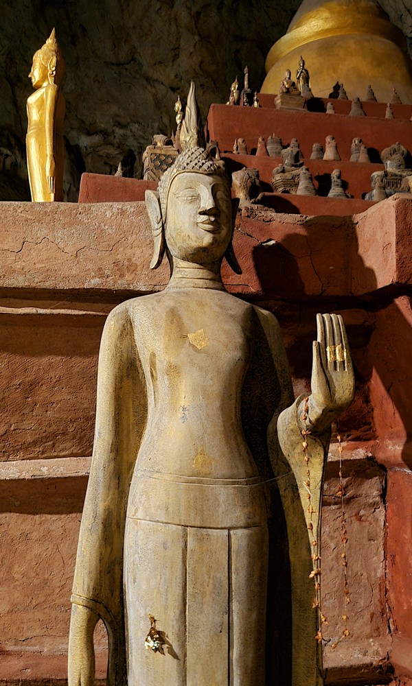 Départ le lendemain sur le Mékong, pour la visite des grottes de Pak Ou et le whisky village (Lao Lao village). Mon avis, les grottes, c'était nul,