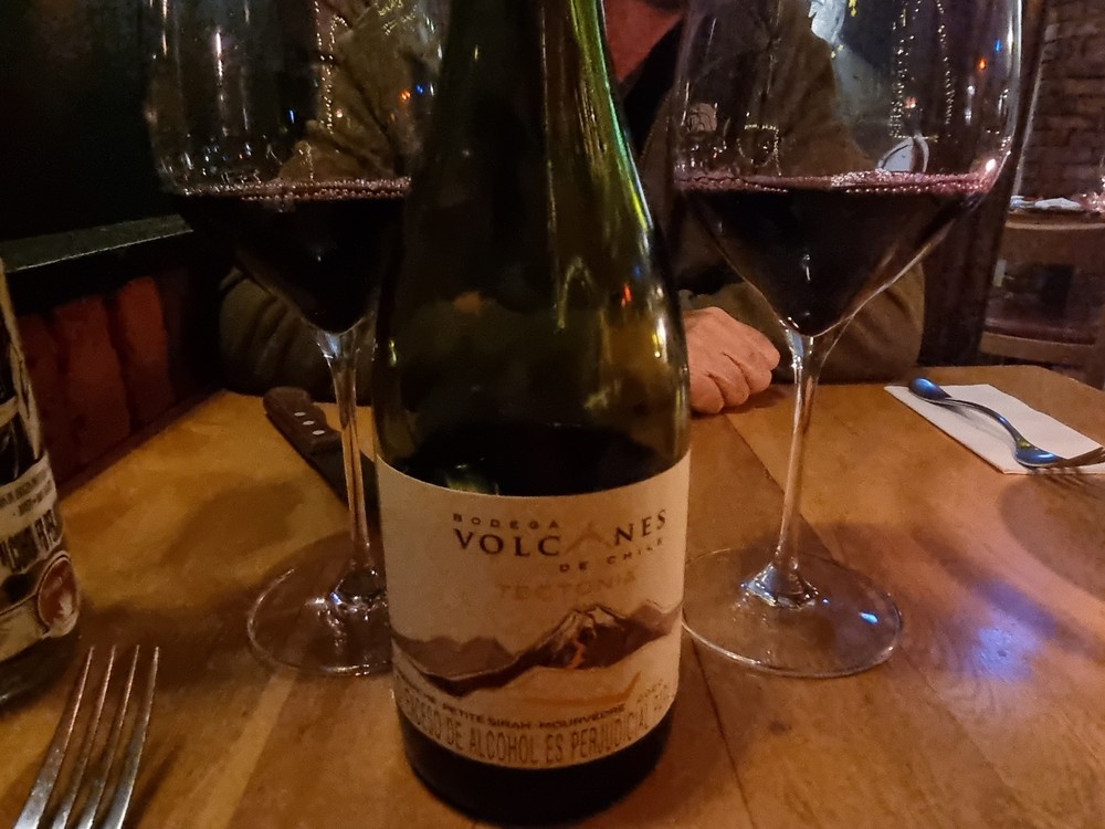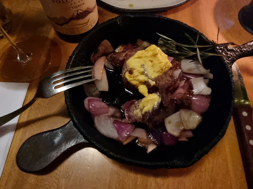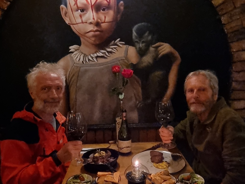 Nous fêtons notre dernière soirée dans un super resto (le T-Bone), autour d'une bonne bouteille de vin chilien.