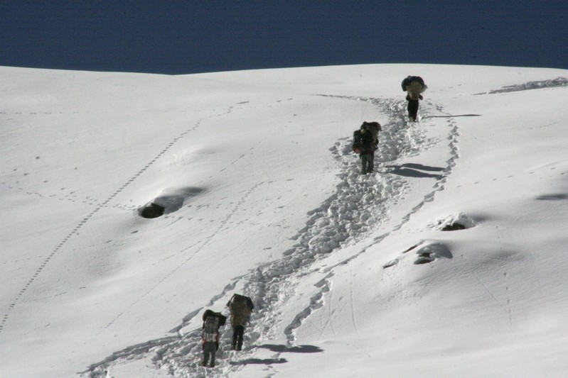 Départ pour Nawal par le col de Kangla Bhanjyang (5300 m).