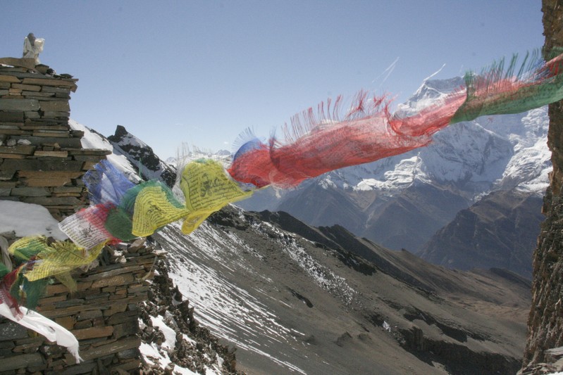 Le col est à 5300 m et nous offre une vue panoramique incommensurablement belle sur la chaine complête des Annapurnas.