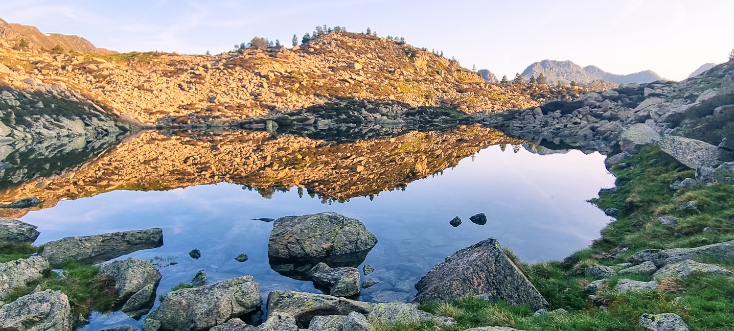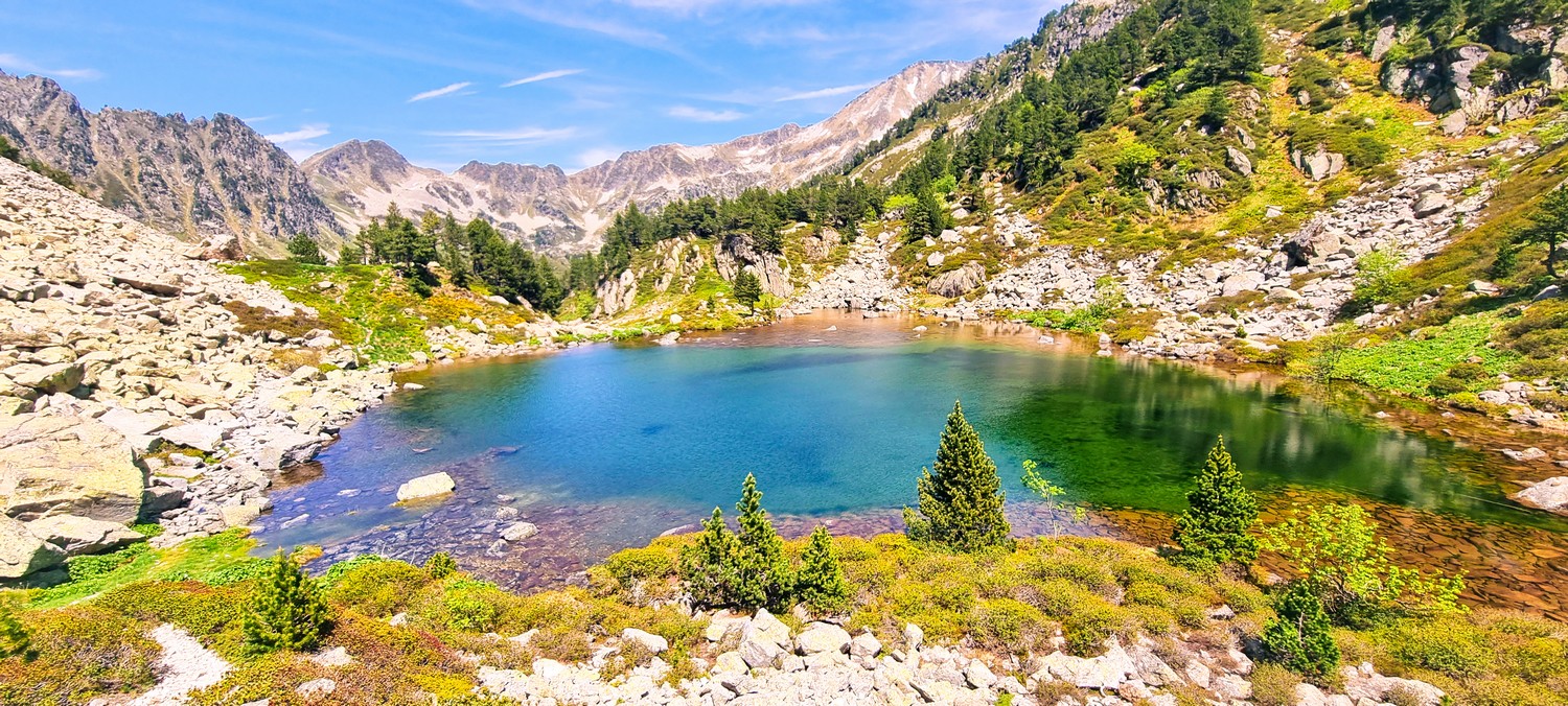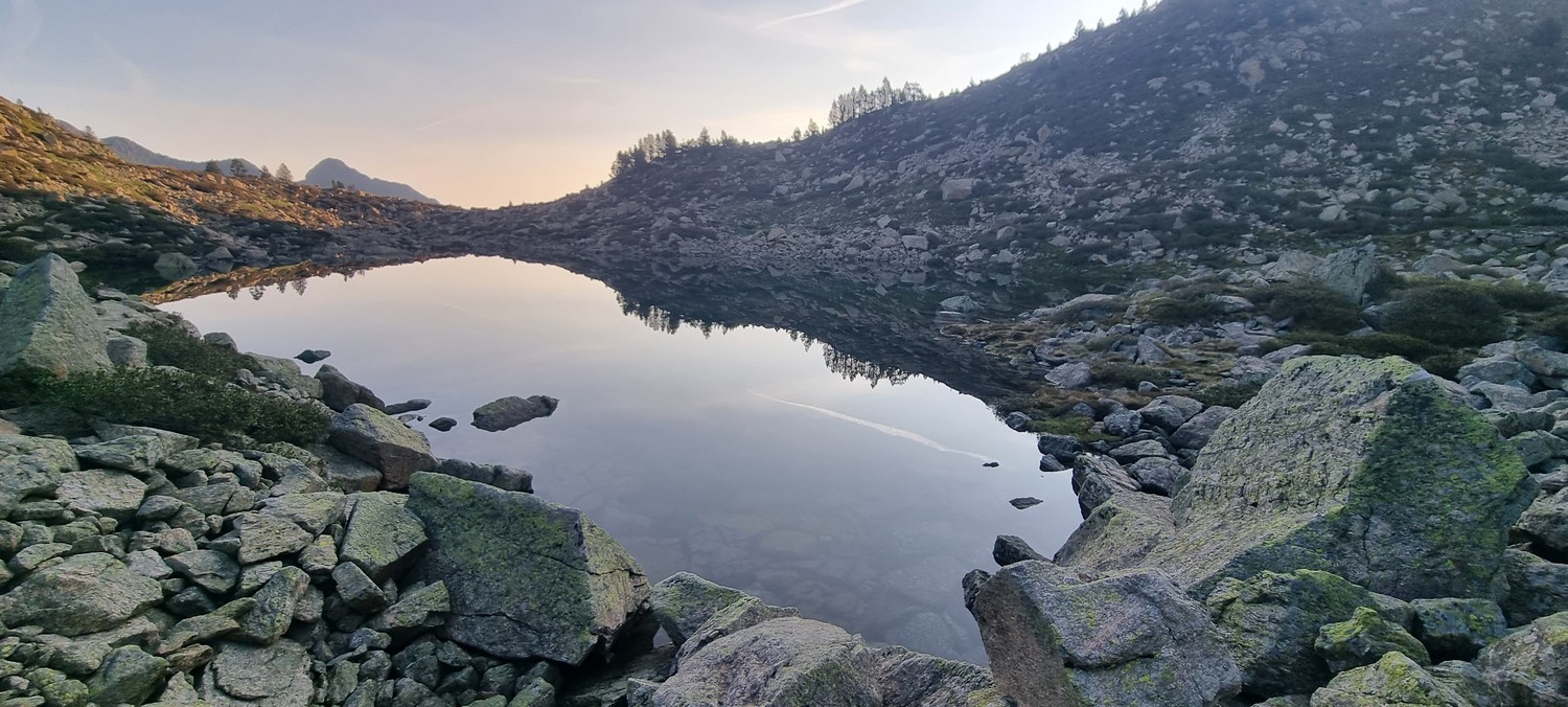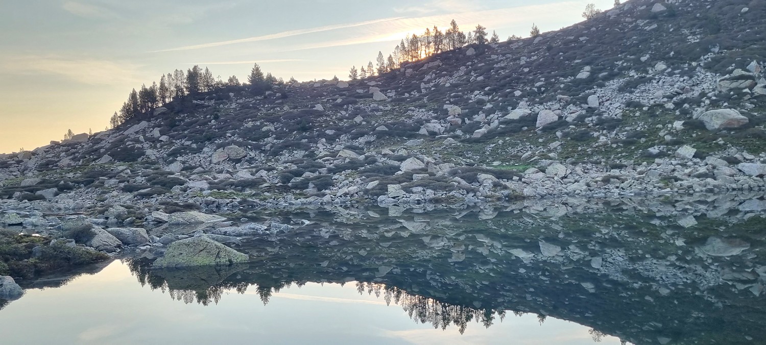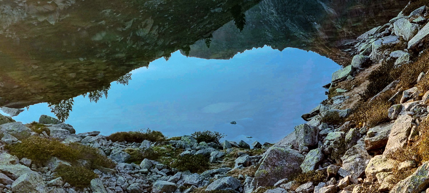 En quittant le refuge, très vite, le sentier s'avère pierreux. Marcher à travers et sur les rochers est vite pénible.