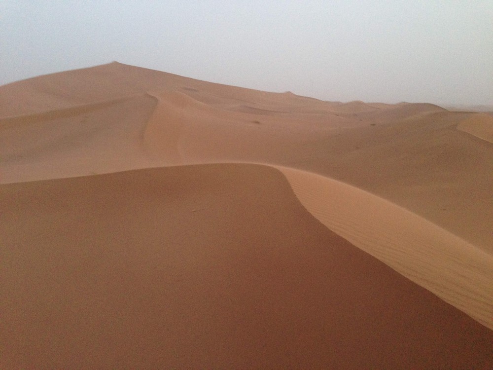 L'après midi sera un peu plus physique car le chemin des dunes est balayé par une tempète de sable qui nous ralenti et diminue notre visibilité.