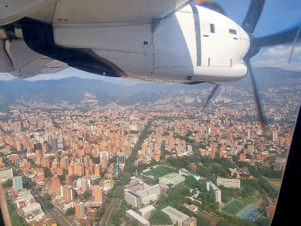 Uber et vol au départ de l'aéroport Olaya Herrera dans un petit avion à hélices.