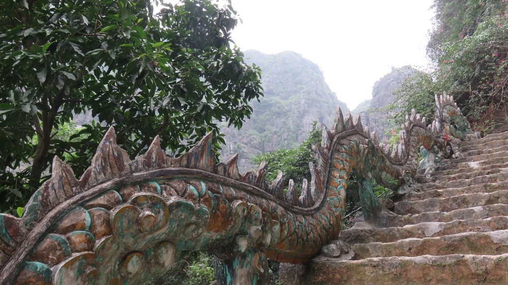 Tout d'abord, visite de Trangan (Trang An est la baie d’Halong terrestre, un paysage envoutant de rochers abruptes s’échappant de la brume des forêts et des rivières, des rizières et grottes parcourues en barque au rythme lent des rameuses), puis visite de la pagode Bai Dinh (temples bouddhistes de la montagne de Bai Dinh), et de l'ancienne capitale Hoa Lu (Capitale du Vietnam sous la dynastie des Dinh) pour terminer avec la visite de Mua Cave (montagne du dragon) avec ses splendides panoramas à 360 degrés, ses 500 marches à gravir, son ambiance sereine en parfaite harmonie avec la nature environnante..