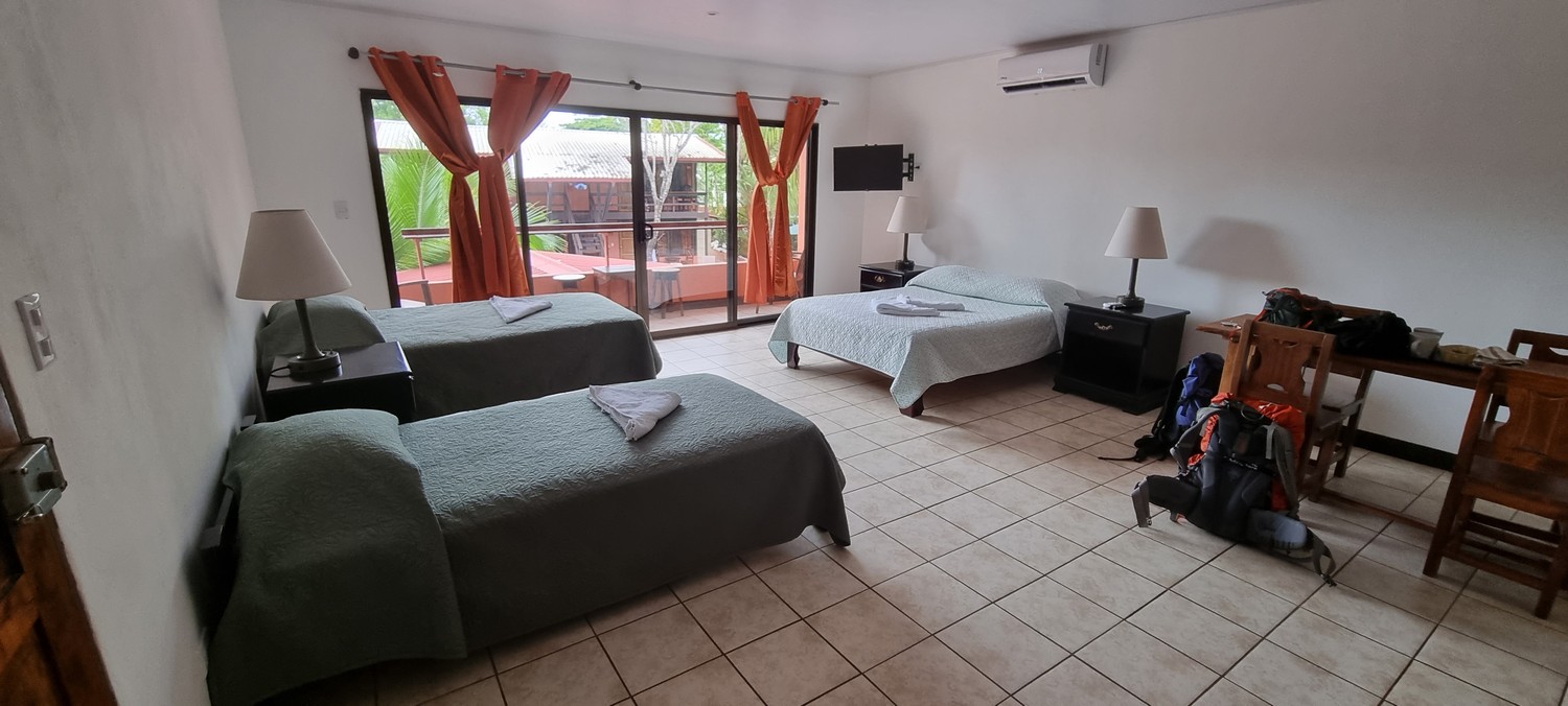 Notre hôtel (Los Ranchos) à Jacó est très confortable et le repos est bien mérité.